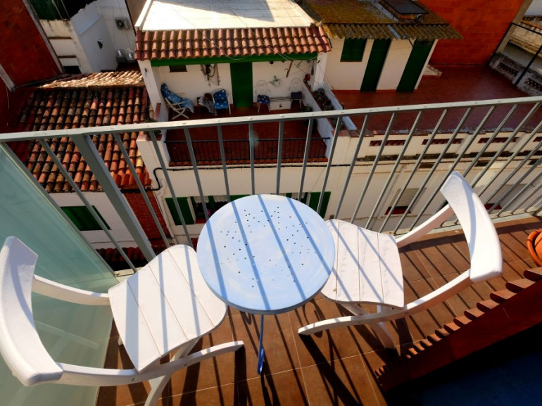 Balcón a una calle peatonal del centro de Rosas